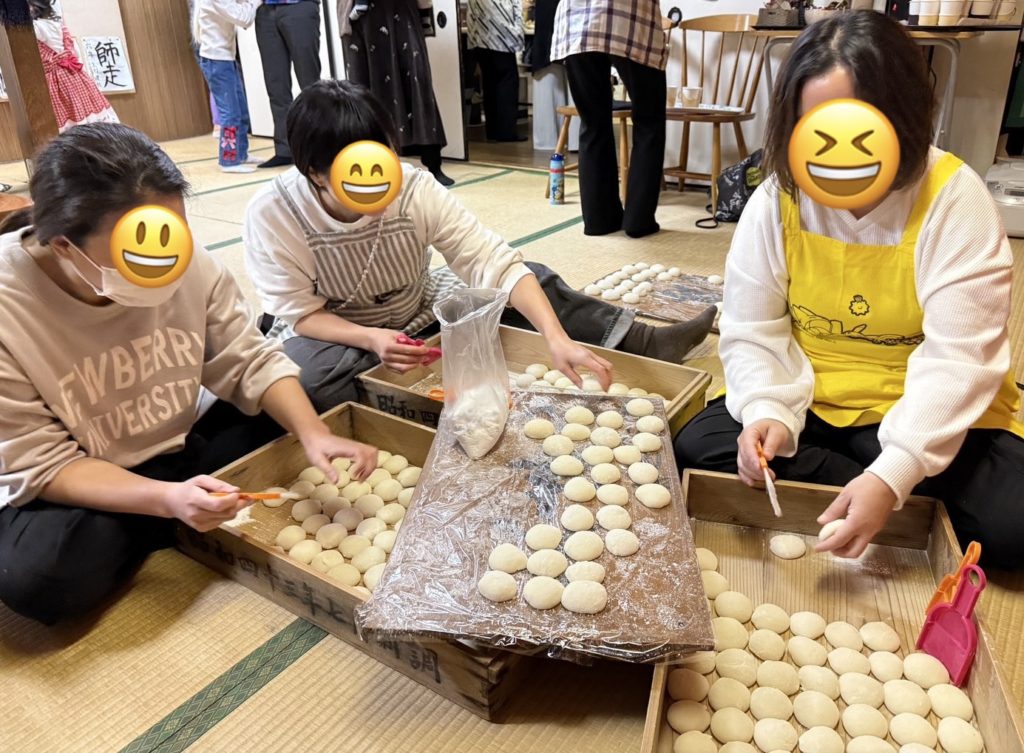 ママたちは、鏡餅に形づくったり、小餅にして、みんなが食べられるようにしました。