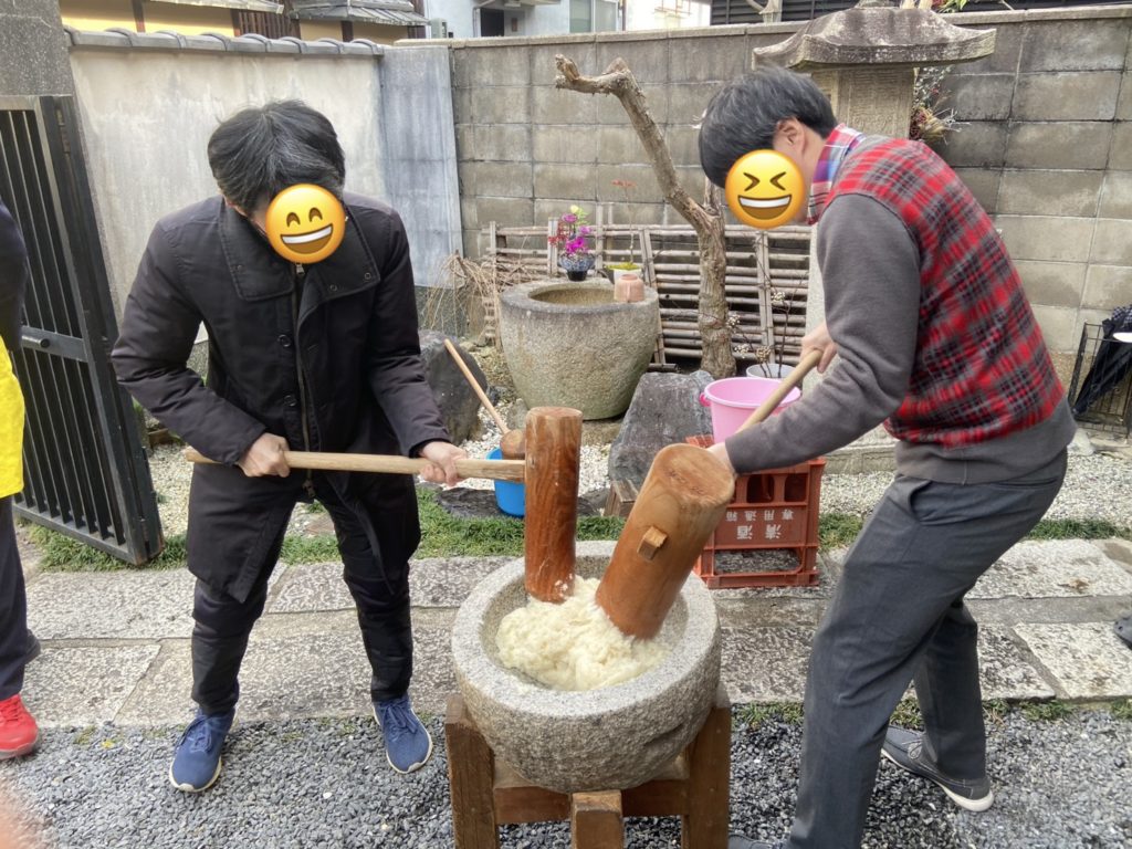 今年は、京都大学のお医者さんや卒業生の方が5名もそろい、京大リレーでおもちを搗きました。