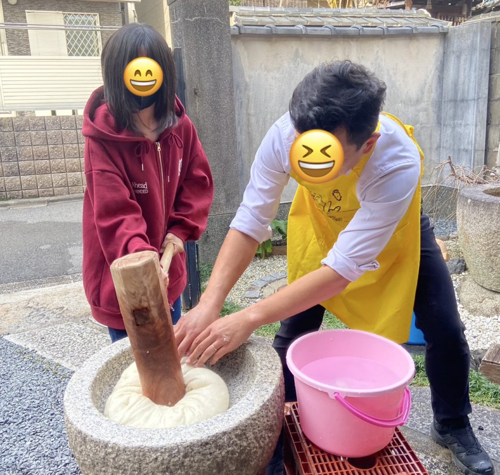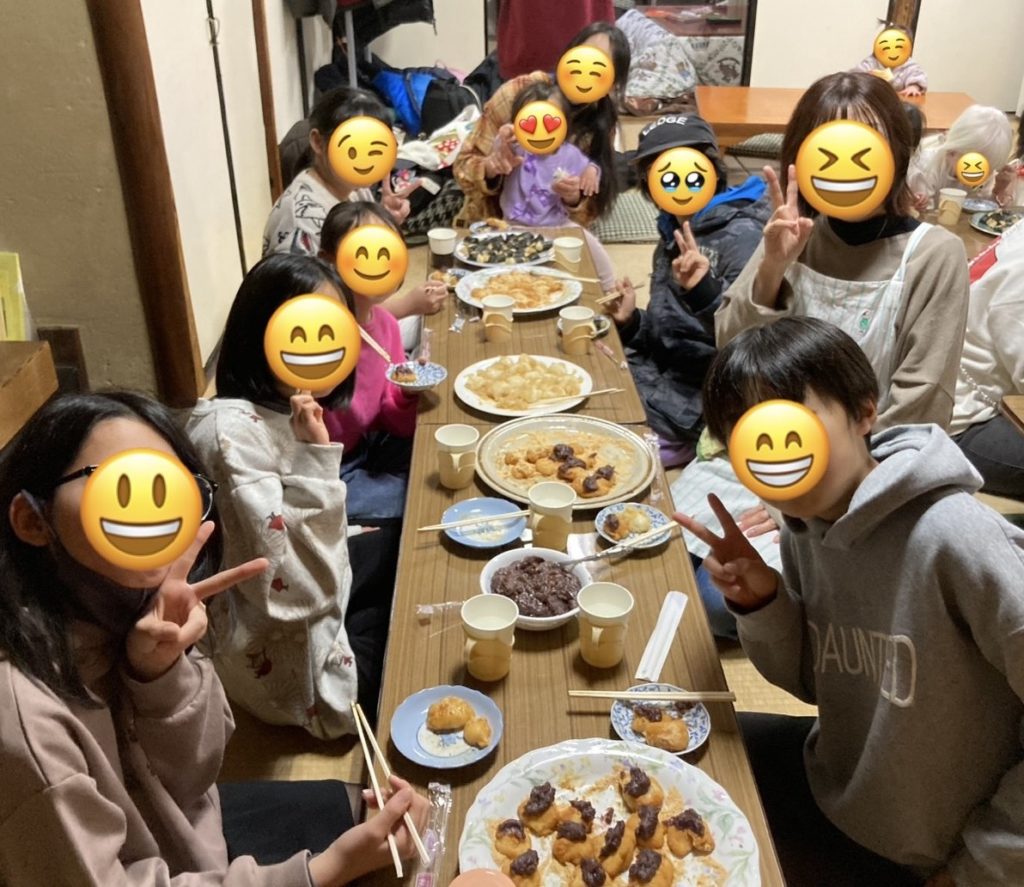 「これを食べたら偏差値あがる?」「受験に合格できるかも?」などと言いながら、搗きたてのおもちを食べました。