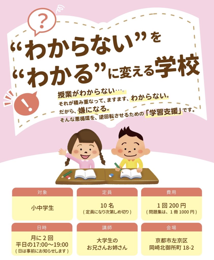 「わからないを、わかるに変える学校」では、子どもの「わからない」を、大学生ボランティアが「わかる」に変えてくれます。